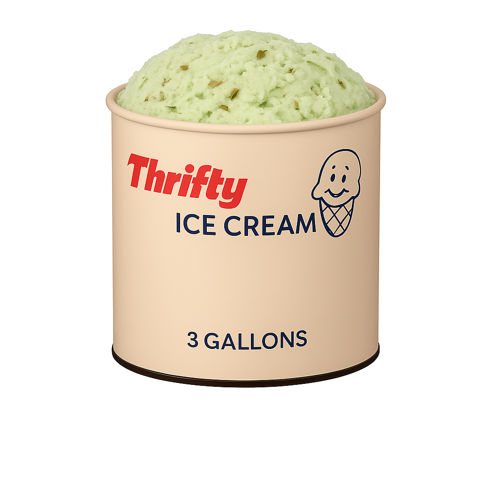 Introducing Thrifty 3 Gallon Ice Cream, the perfect solution for your ice cream cravings! Made with only the freshest ingredients, this creamy treat boasts a 3 gallon capacity, giving you more bang for your buck. Enjoy the rich, delicious flavor in every bite. Satisfy your sweet tooth with Thrifty 3 Gallon Ice Cream.